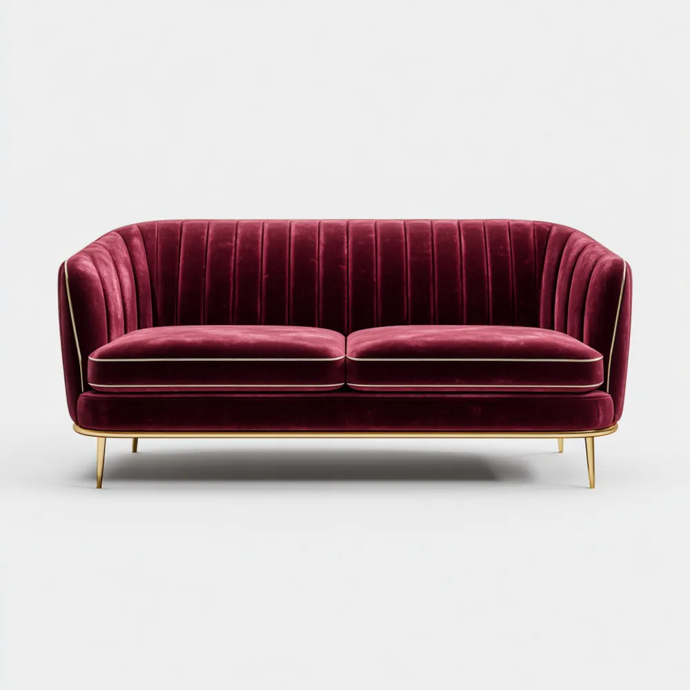 Introduction du ProduitAjoutez une touche d'élégance à votre salon avec ce canapé 2 places en velours bordeaux au design contemporain. Idéal pour les espaces de vie modernes, ce canapé offre confort et style.